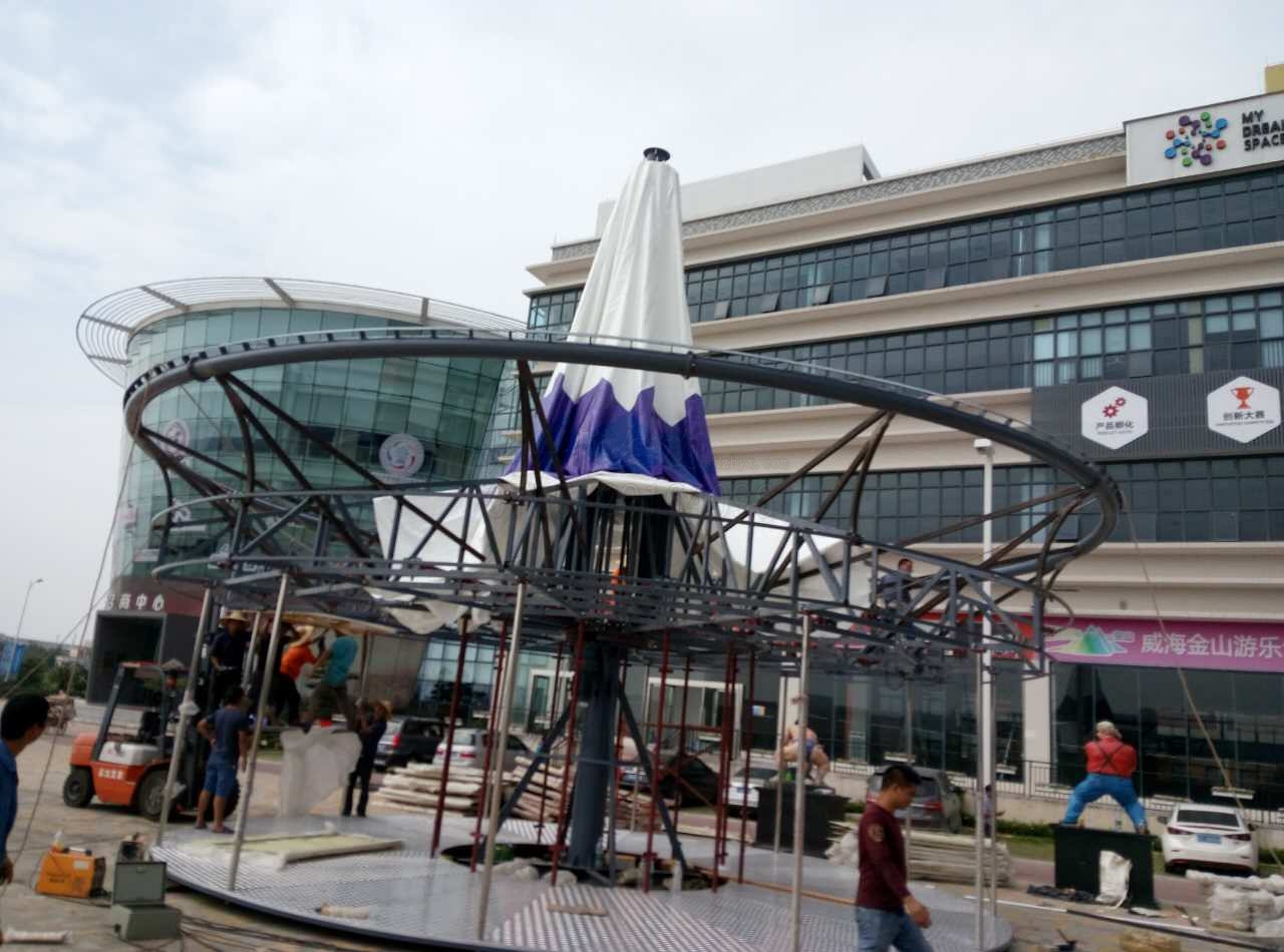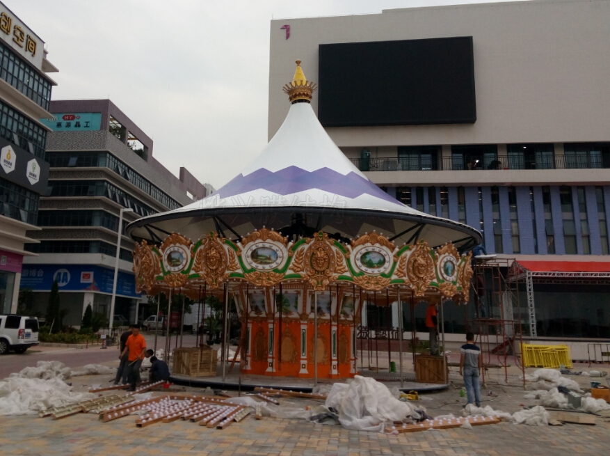 9月末,中山游樂(lè)場(chǎng)的相關(guān)人員找到我們公司,希望做一個(gè)膜結(jié)構(gòu)棚頂?shù)男D(zhuǎn)木馬。每一個(gè)旋轉(zhuǎn)木馬,都是游樂(lè)場(chǎng)最漂亮最耀眼的存在,但傳統(tǒng)的木馬設(shè)施,棚頂都是用普通彩色帆布來(lái)做,用一兩年就會(huì)褪色腐爛,這次中山游樂(lè)場(chǎng)采用我們的膜結(jié)構(gòu)進(jìn)行制作,看中的是膜材那長(zhǎng)達(dá)15年以上的使用壽命和科學(xué)設(shè)計(jì)的鋼結(jié)構(gòu)帶來(lái)的安全保障。