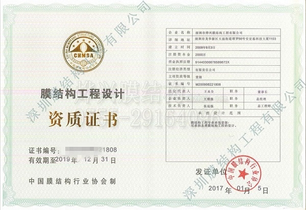 膜結(jié)構(gòu)設(shè)計(jì)一級證書