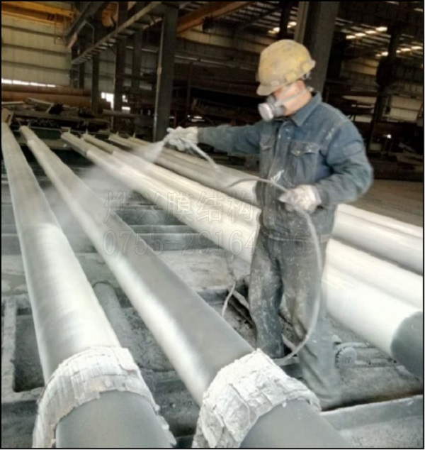 上漆之前要先經過專業(yè)的噴砂打磨,圖為噴砂處理過的鋼管表面