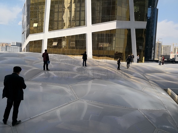 專家團正在對燁興-西寧唐道ETFE膜結(jié)構(gòu)工程進行驗收
