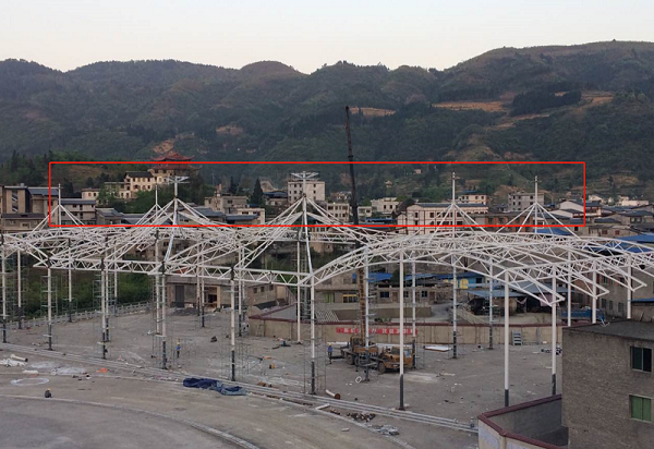 燁興桐梓二中籃球場(chǎng)膜結(jié)構(gòu),考慮到雨天也有學(xué)生活動(dòng),設(shè)計(jì)時(shí)特別強(qiáng)化了防雷能力