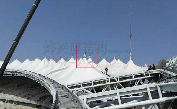 燁興昌南體育中心項(xiàng)目,每個(gè)膜結(jié)構(gòu)冒口頂部都具有避雷針的功能