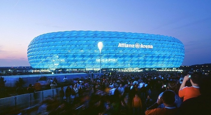德國(guó)安聯(lián)球場(chǎng),世界最大的ETFE膜結(jié)構(gòu)足球場(chǎng),游人如織