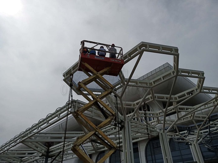 ETFE膜結(jié)構(gòu)項(xiàng)目,最費(fèi)工期的是鋼結(jié)構(gòu)骨架制作施工。不同于一般的PTFE或者PVDF膜結(jié)構(gòu)工程,ETFE膜不能硬拉伸,所以其鋼結(jié)構(gòu)加工精度要求非常高,需要技術(shù)熟練的工人在專業(yè)人士的監(jiān)督下按嚴(yán)格工序進(jìn)行。貴港高鐵站雨棚的鋼結(jié)構(gòu)體量較大,要求現(xiàn)場(chǎng)拼接安裝,從今年3月22日起吊第一片雨棚骨架,到6月11日鋼結(jié)構(gòu)才全部完工,在工期計(jì)劃之內(nèi)。我們的第一個(gè)ETFE氣枕單元,是在6月12號(hào)上午完成安裝。