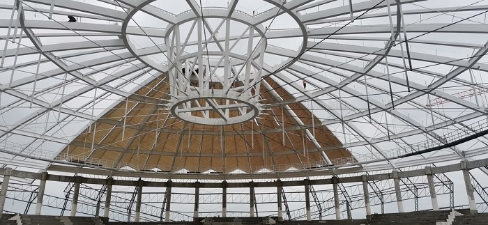 對于一個大型膜結(jié)構(gòu)工程項目而言,第一塊膜布如果安裝順利,那么這個項目就會進入裝膜快車道。燁興-京山國際網(wǎng)球賽事中心膜結(jié)構(gòu)目前就是這種狀態(tài),一起去看看我們的現(xiàn)場實況。