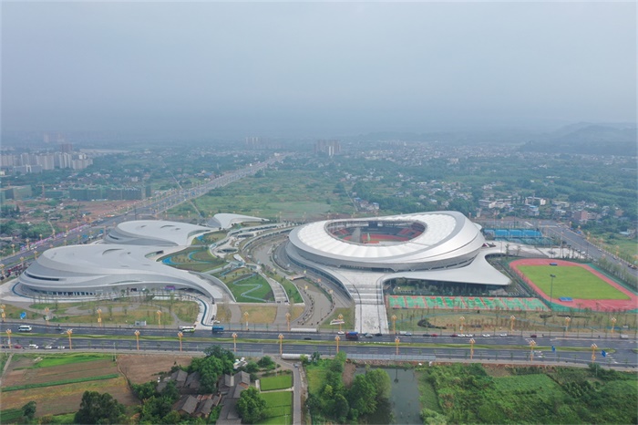 樂山市奧林匹克中心作為2022年四川省第十四屆運(yùn)動會主場館,主要建設(shè)內(nèi)容為“一場三館”及配套用房,地下車庫等。其中“一場三館”包括主體育場30000座席,建筑面積約4.6萬平方米;體育館6000座席,建筑面積約2.7萬平方米;游泳館300座席,建筑面積約2.2萬平方米;綜合訓(xùn)練館建筑面積約2.9萬平方米,地下車庫約5.5萬平方米,共設(shè)1580個(gè)停車位。